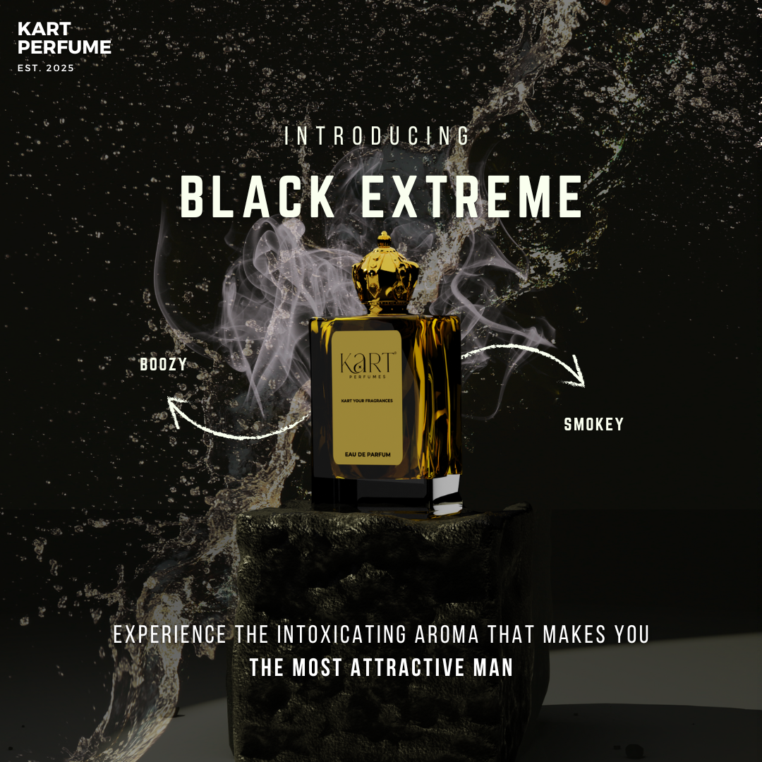 🖤 Black Extreme by Kart Perfumes 🖤 Dark, intense, and undeniably bold—Black Extreme is a fragrance for those who embrace power and mystery. With a striking blend of spicy, woody, and musky notes, this long-lasting scent exudes confidence and sophistication. 🌟 Fragrance Notes: 🔸 Top Notes: Spiced Cardamom, Bergamot, Black Pepper 🔸 Heart Notes: Warm Amber, Leather, Cedarwood 🔸 Base Notes: Dark Musk, Patchouli, Vanilla, Smoky Oud